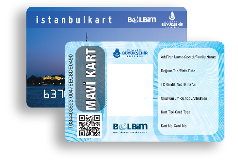 أما الكرت الأزرق فهو عبارة عن كرت شهري يتم تعبئته ب 205 ليرة تركية لـ 180 أستخدام لمدة شهر واحد ، عادة يستخدم هذا الكرت الأشخاص الذين يتنقلون كثيراً فهذا يكون أوفر لهم بالإضافة إلى أن هذا الكرت يستخدم من قبل شخص واحد فقط.